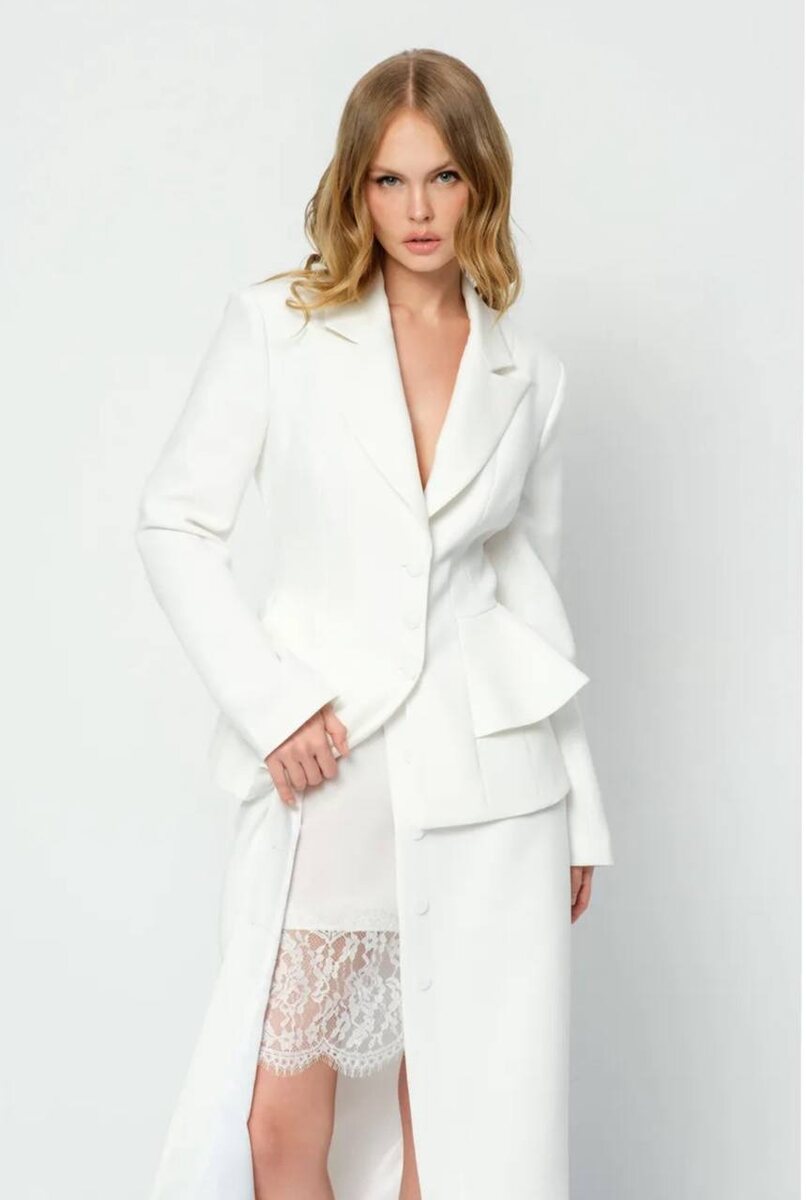 P.S. Обратите внимание, как молочные туфли «спорят» с белым костюмом — ни по тону, ни по форме они не попали, их наверное брали как повтор волны баски, но не сложилось.