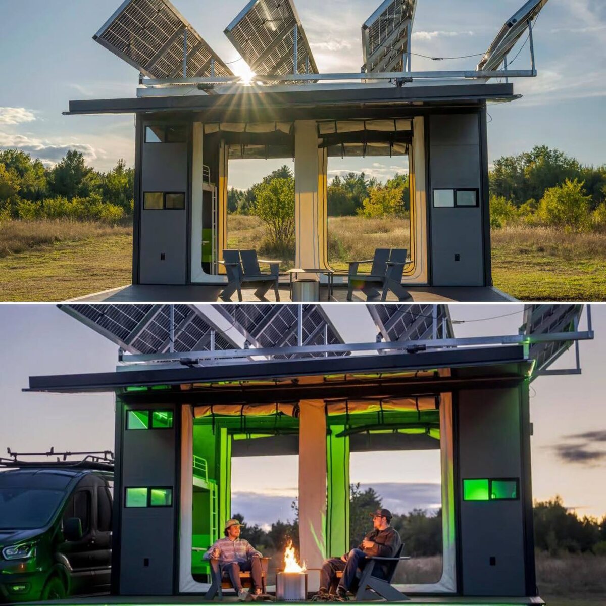 EO Canopy от Electric Outdoors позволяет полностью отключиться от электросети и жить на природе, сохраняя все удобства. Установка работает на солнечных батареях и может генерировать до 64 кВт·ч/день, что сопоставимо с питанием двух американских домов