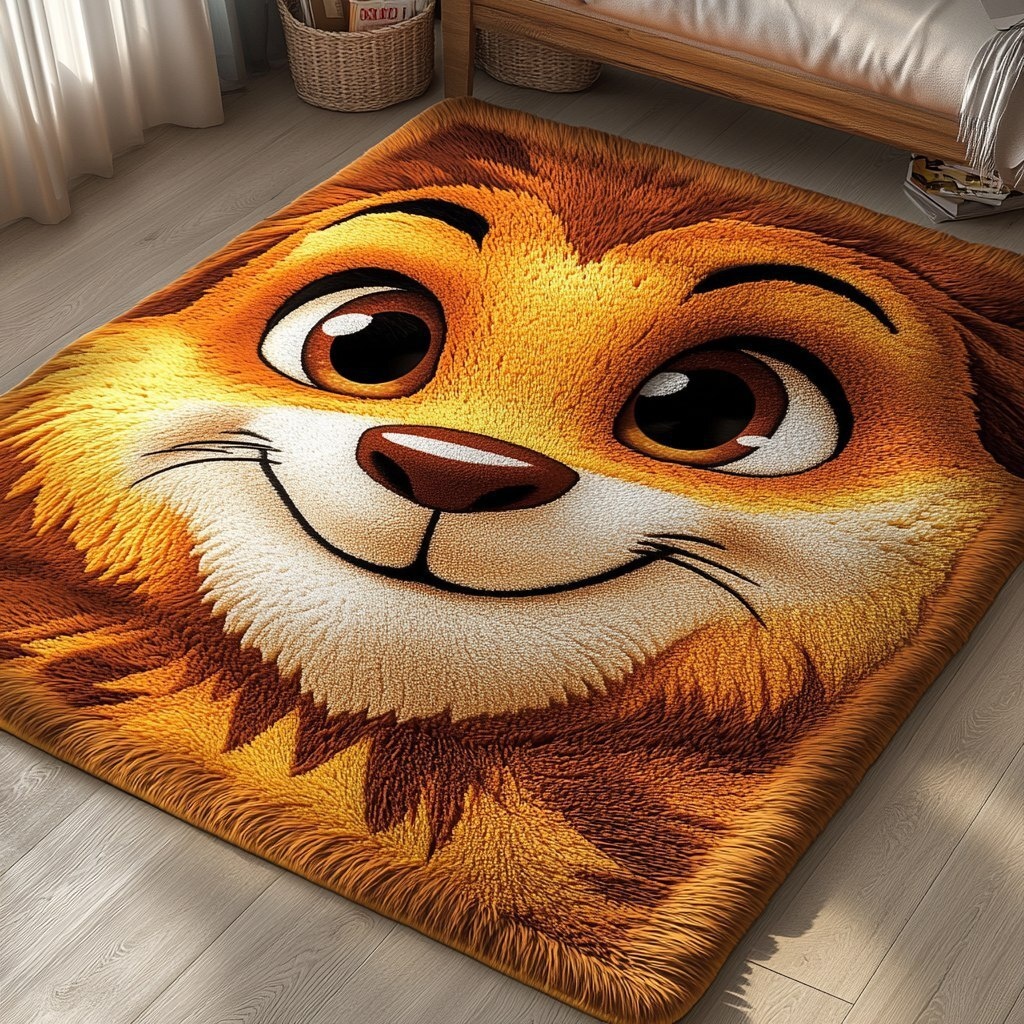 Создано на основе запроса: a tufted rug with a cartoon-style animal face, fluffy and textured, vibrant colors, realistic lighting, 4K, ultra-detailed