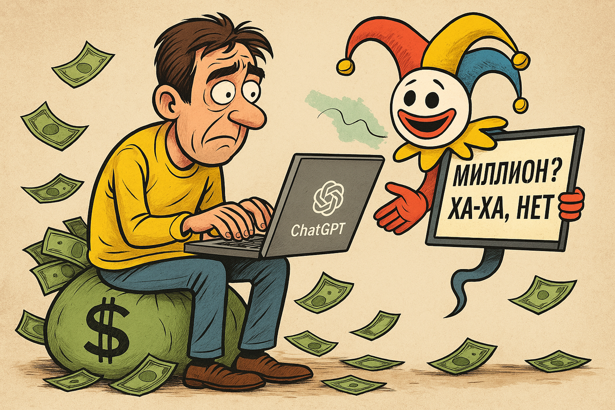Вы когда-нибудь гуглили: «как быстро разбогатеть с помощью нейросети»? Я — да. И, возможно, зря. Хотя кому я вру — конечно не зря. Это был восхитительный путь самоунижения, заблуждений, цифровых миражей и… кое-каких полезных инсайтов. Делюсь — вдруг вы на грани того же просветления.