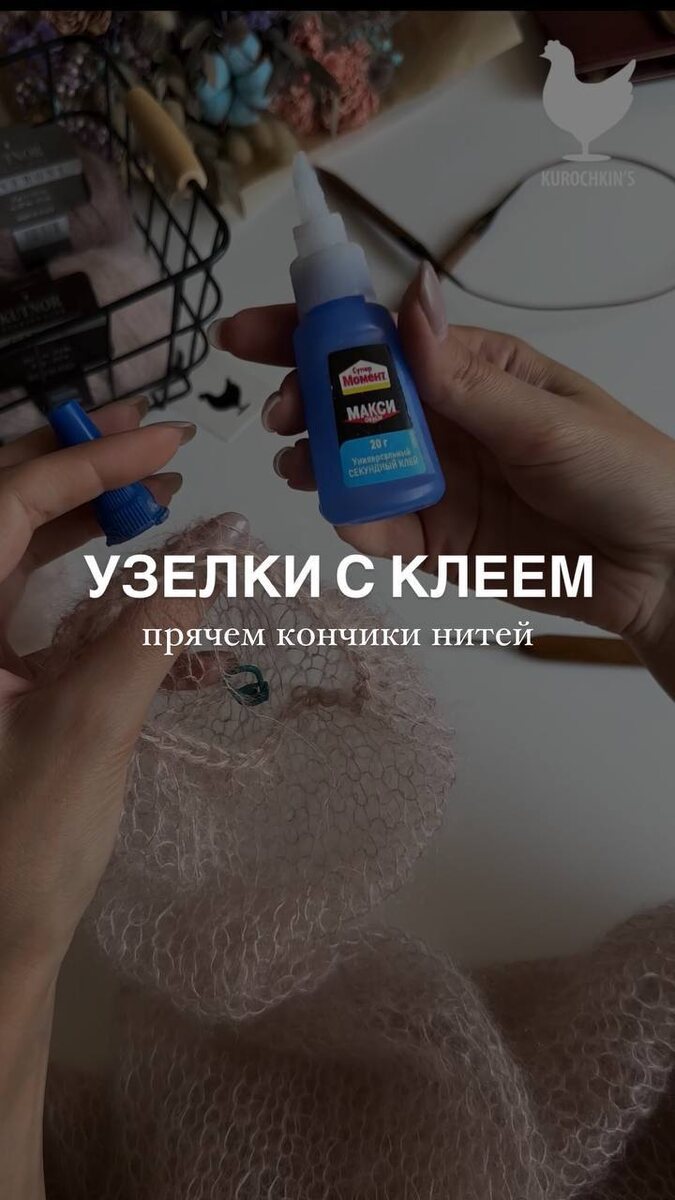 ♾ Узелки с клеем - прячем кончики нитей В 90% случаев все наши узелки проклеиваются, и именно этим Моментом! Лучше него ещё не нашли клея 🙌🏼 (и за многие годы ни один узелок не развязался) Чтобы было всё аккуратно и место склейки не царапалось, важно: 🔘капать мини каплю в узел 🔘завязывать второй узел сверху 🔘сплющивать его чем-то твердым Связать такую нежную паутинку можно по нашему ВИДЕО-МК ПАУТИНКИ 🐱 Есть нити, которые не нуждаются в узелках, например, пух норки (кончики прекрасно прячутся в полотне), так что не всегда имеет смысл клей ❤️ 🫶🏼 сейчас упаковка у клея с желтым колпачком стала