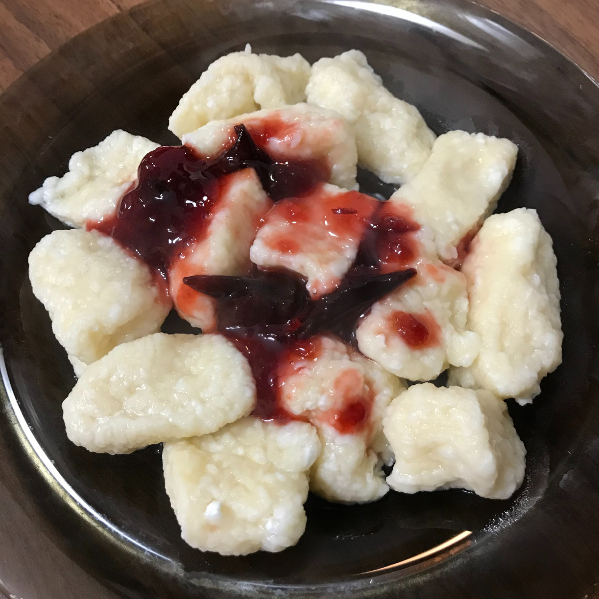 🔹Соль по вкусу 1️. В широкую миску выложить творог, добавить яйцо, сахар и муку и вилкой смешать до однородной консистенции. Если масса получилась слишком липкой, добавить еще муки, но не больше половины столовой ложки. 2️. Посыпать стол небольшим количеством муки и выложить творожную массу. Разделить на две равные части и из каждой скатать колбаски одинаковой толщины. 3️. Острым ножом нарезать колбаски на небольшие одинаковые кусочки. При желании можно слегка приплюснуть затем каждый кусочек и придать ему округлую форму. 4️. В небольшой кастрюле довести до кипения воду. Аккуратно один за другим опустить вареники в кипящую воду. Варить, слегка помешивая шумовкой, пока все вареники не всплывут на поверхность, плюс еще минуту. 5️. Готовые вареники выложить из кастрюли на тарелки и полить вареньем, например абрикосовым. Подавать их можно горячими или теплыми. ✅Готово