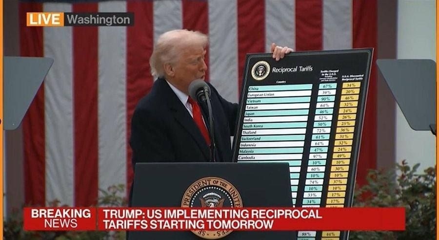 ⚡ Сегодня Трамп ввëл пошлины на весь мир.