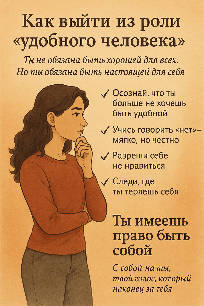 Быть удобным «легче», чем отстаивать себя. Особенно если раньше за это наказывали или отталкивали. И самое страшное — удобных не уважают.