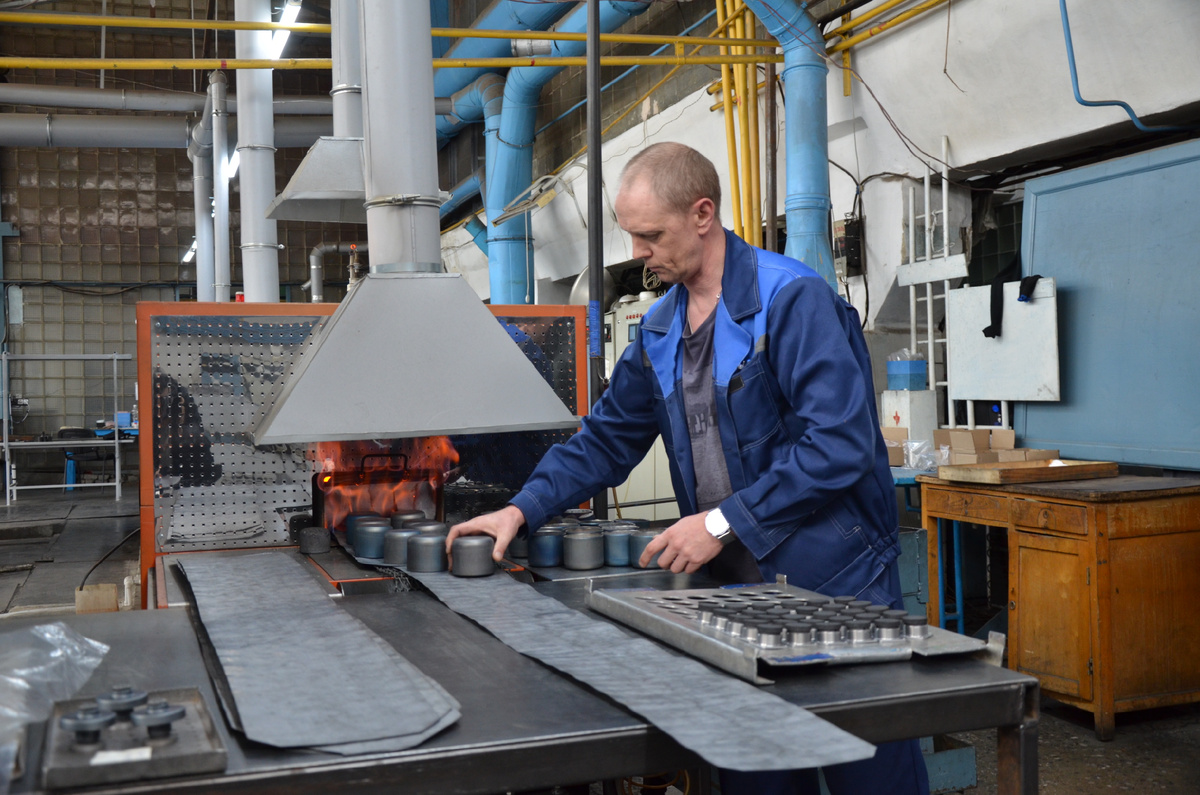 - Весь процесс происходит в специальных печах, в среде защитных газов, – рассказывает специалист. – Наша основная печь – почти ровесница завода. Ввиду увеличившихся объёмов производства были приобретены ещё две печи отечественного производства, которые имеют удобный интерфейс, систему контроля качества, более точные регулировки. Детали вручную устанавливаются на конвейерную ленту, накрываются защитными колпаками и со скоростью 5 сантиметров в минуту отправляются в печь, раскалённую до 920-950 градусов Цельсия. В среднем весь процесс занимает 1,5-2 часа.