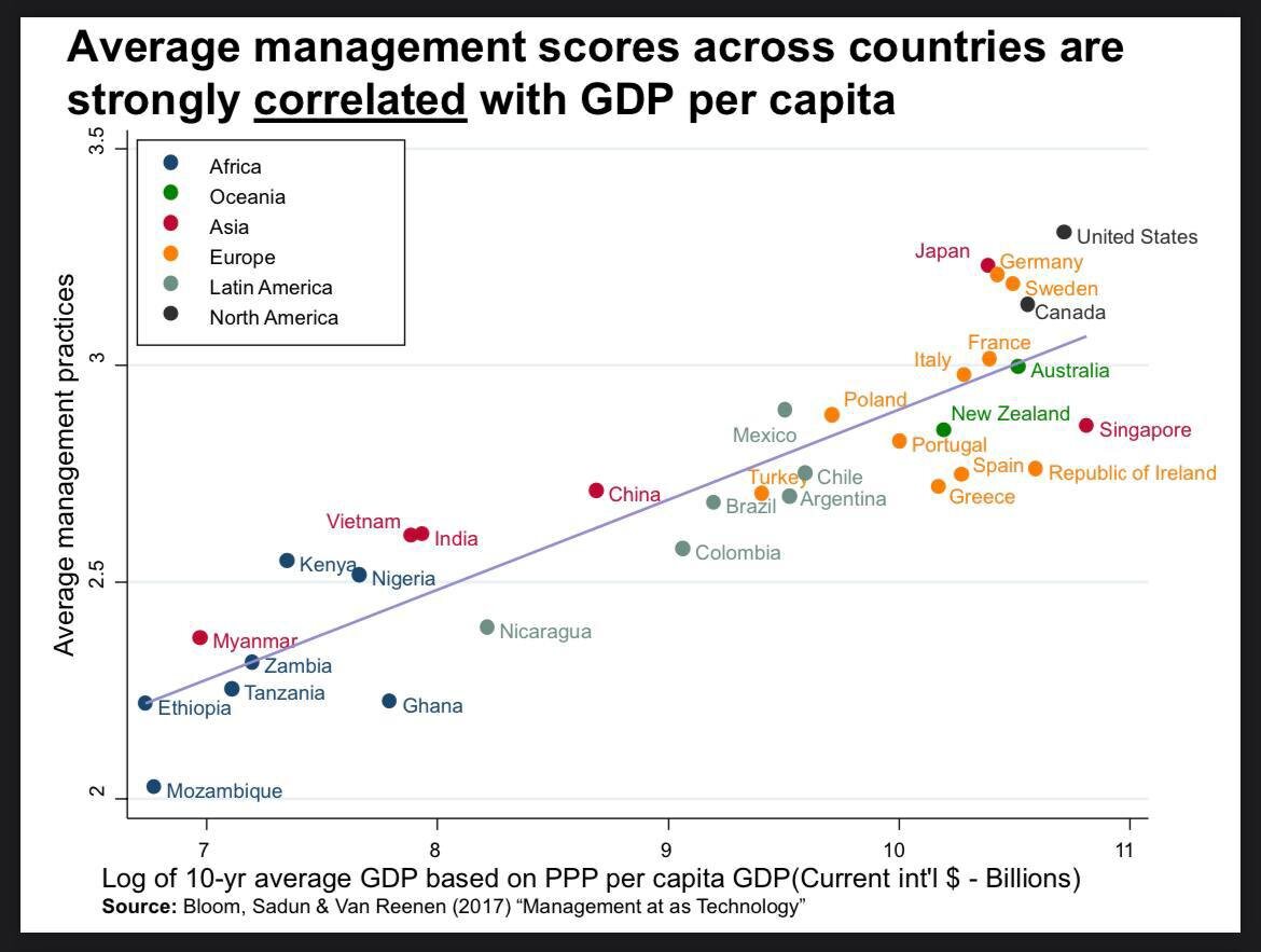 1. Уровень качества менеджмента жестко коррелирует с GDP per capita