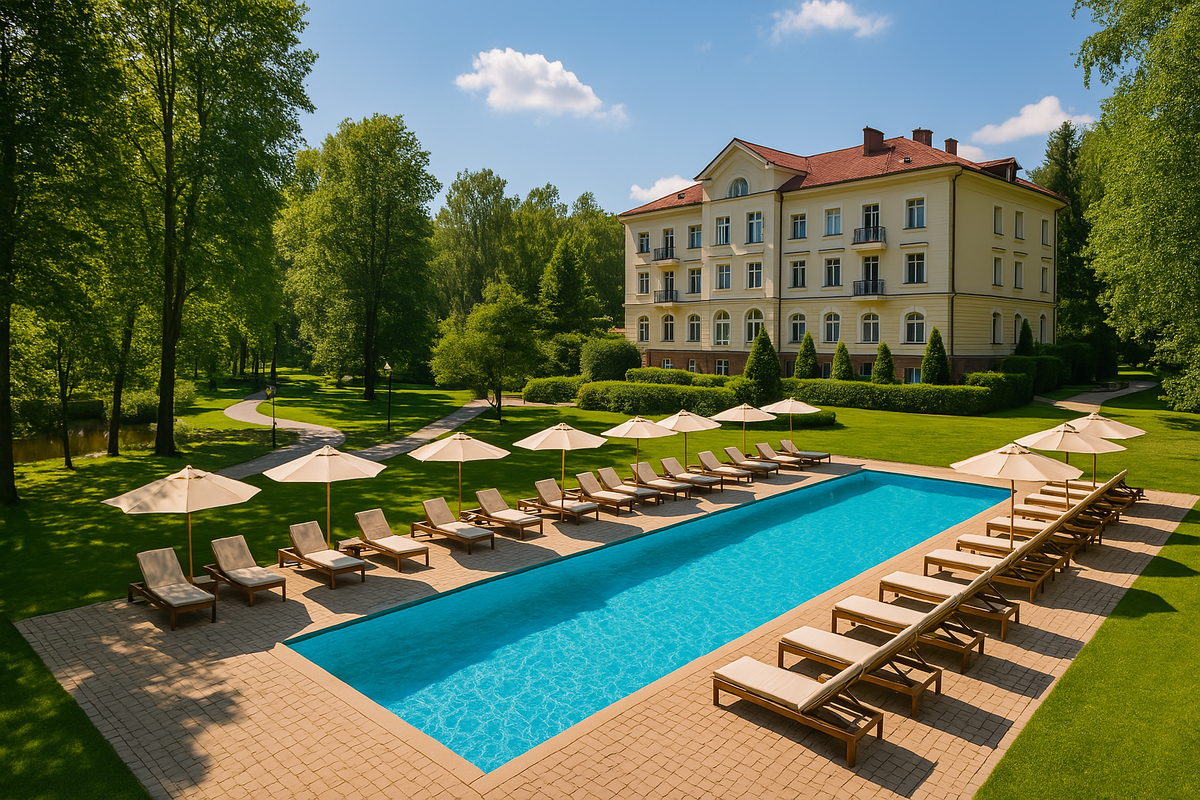 Современный загородный комплекс с развитой инфраструктурой. Гостям предлагаются номера различных категорий, спа-центр с бассейном, рестораны, бары и детские площадки. Идеально подходит для семейного отдыха и корпоративных мероприятий.