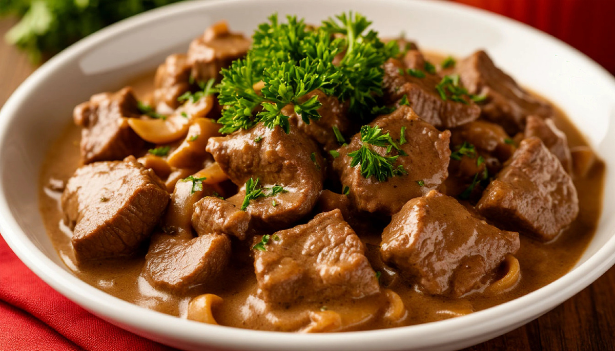 Бефстроганов — это классическое русское блюдо, которое готовится из говядины с добавлением сметаны и грибов. Вот подробный рецепт с граммовками.