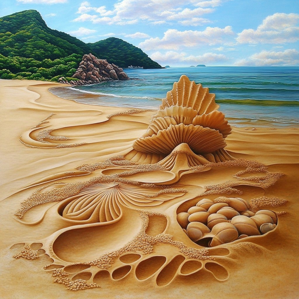 Создано на основе запроса: beautiful sand art of Japan's clam digging, near the colorful Japanese natures, fantasy, romantic dreamy mood, special sightseeing, elegant, cute, dramatic viewing, amazing world, photorealistic drawings --- Автоперевод: Красивое песочное искусство японского моллюска, возле красочной японской природы, фантазии, романтического мечтательного настроения, особых достопримечательностей, элегантного, милого, драматического просмотра, удивительный мир, фотореалистичные рисунки Какое твое впечатление? 🤔 https://dzen.ru/id/65c0c65c86e4f837c27b24d7 #ИИ #AI #нейросеть #midjourney #art