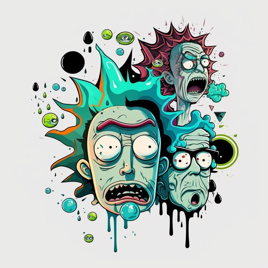 Создано на основе запроса: /Rick & Morty vector tattoo design, white background,