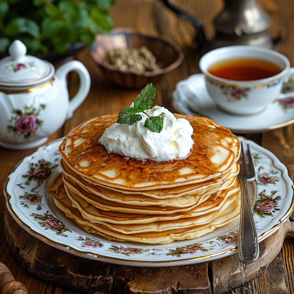 Взгляд падает на тарелку с блинами.