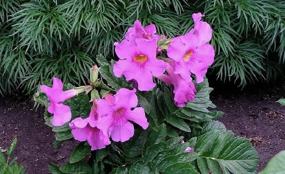 Необычная листва и нежные трубчатые цветки, схожие с цветками душистого табака, глоксинии или петунии.