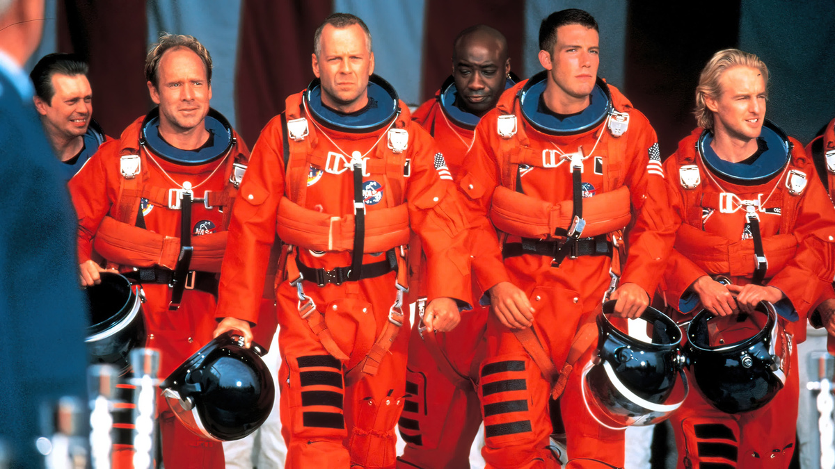 Разудалый блокбастер родом из лихих 90-х, где группа отважных искателей бурильщиков, дерзко разменяв амплуа, противостояла гигантскому астероиду, который мог уничтожить нашу старушку планету Земля. Ключевую помощь в спасении миссии новоиспеченных астронавтов, оказал русский космонавт, полковник Лев Андропов, который почему-то находится на станции "Мир" в гордом одиночестве, в открытом космосе. Роль эту сыграл шведский актер Петер Стормаре. Стереотипный образ авторской мысли, венчала шапка ушанка и старая футболка с надписью СССР. Будем откровенны в такой компании у астероида шансов не было. Так Брюс Уиллис подтвердил статус самого успешного спасителя вечно попадавшей в глобальные неприятности планеты. А группа Aerosmith с копмозицией I Don't Want to Miss a Thing растрогала всех у экрана, став завсегдатаем радио станции в конце 90-х. Фильм был сказочно успешен в мировом прокате, собрав только в мировых кинотеатрах 554 миллиона баксов.