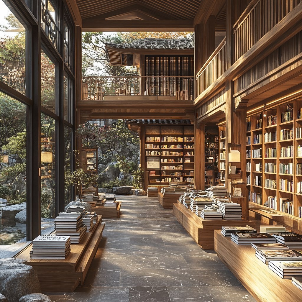 Создано на основе запроса: Render a bookstore, with an area of 1,000 square metres, divided into multiple areas, different types of books in different areas, but also have reading areas. The whole design style is new Chinese, with a wooden structure. The angle of view of the picture should be a little larger, and the perspective of two points should be two. --- Автоперевод: Отправить книжный магазин с площадью 1000 квадратных метров, разделенной на несколько областей, различные виды книг в разных областях, но также имеют области чтения. Как тебе эта картинка? 🤔 https://dzen.ru/id/65c0c65c86e4f837c27b24d7 #ИИ #AI #нейросеть #midjourney #art