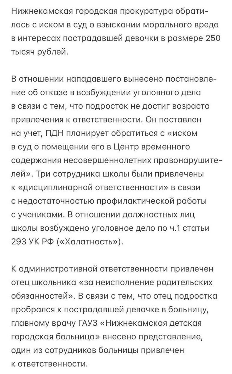 ⏺Помните историю с избиением девочки из Нижнекамска неадекватным школьником