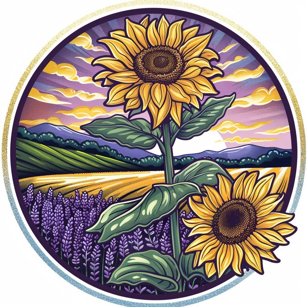 Создано на основе запроса: logo for a farm with sunflowers and lavender, unique design logo --- Автоперевод: Логотип для фермы с подсолнухами и лавандой, уникальный дизайн логотип Как тебе такая картинка? 🤔 https://dzen.ru/id/65c0c65c86e4f837c27b24d7 #ИИ #AI #нейросеть #midjourney #art