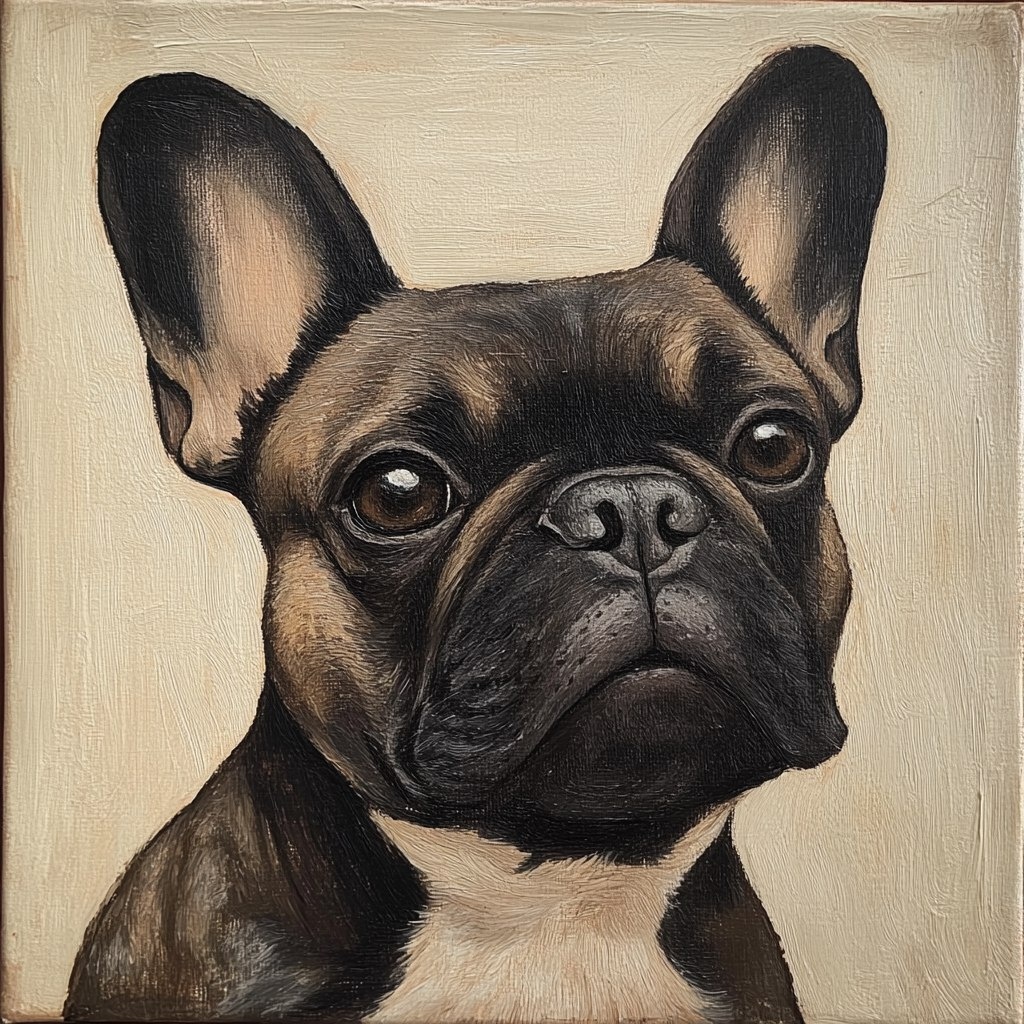 Создано на основе запроса: a paint of french bulldog, frida kahlo style