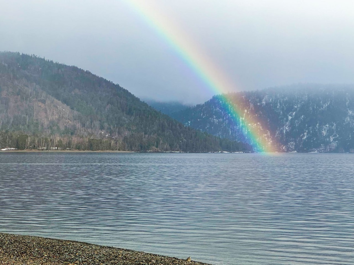 На Телецком озере первый в этом году настоящий дождь и радуга🌈