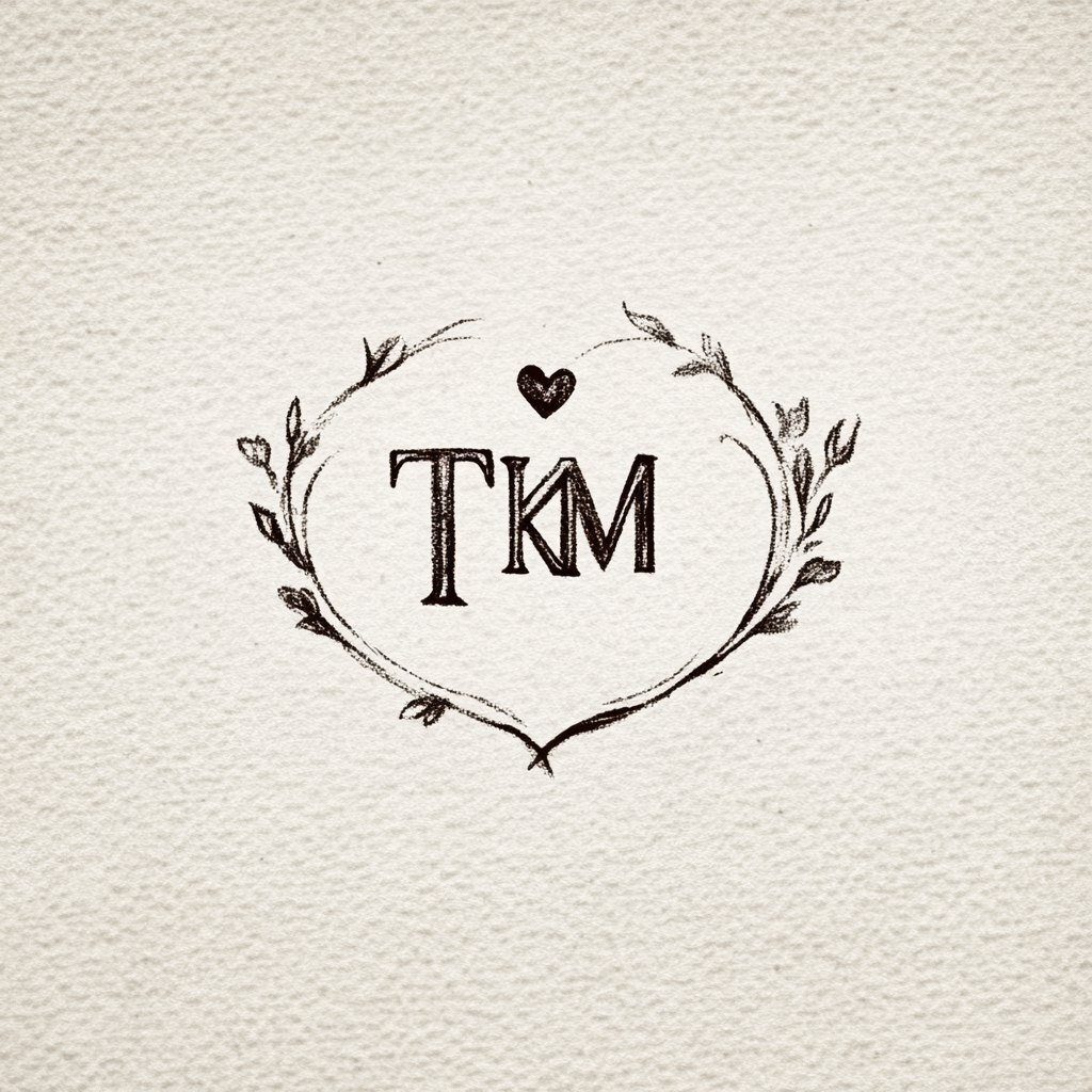Создано на основе запроса: A simple, vintage logo design featuring the initials Tkm, on a white background. The logo should reflect love. --- Автоперевод: Простой, винтажный дизайн логотипа с инициалами TKM на белом фоне. Классно получилось? 🤔 https://dzen.ru/id/65c0c65c86e4f837c27b24d7 #ИИ #AI #нейросеть #midjourney #art