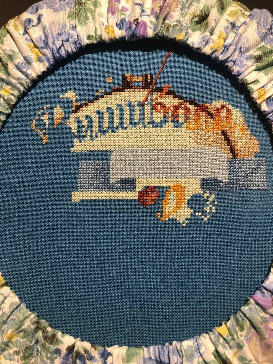 Сэмплер «Вышиваю» 32% + 2128х = 57% С последнего показа на этом процессе прибавилось целых две тысячи крестиков. Это за три недели, потихоньку Основные желтые и бледно-коричневые цвета выходят из работы, остаются синие, зелёные и различные стежки бэка До финиша 3500х и срок до конца месяца В отпуск (с 1 мая) будут ехать уже другие процессы, этот уже должен быть готов с этой дате!