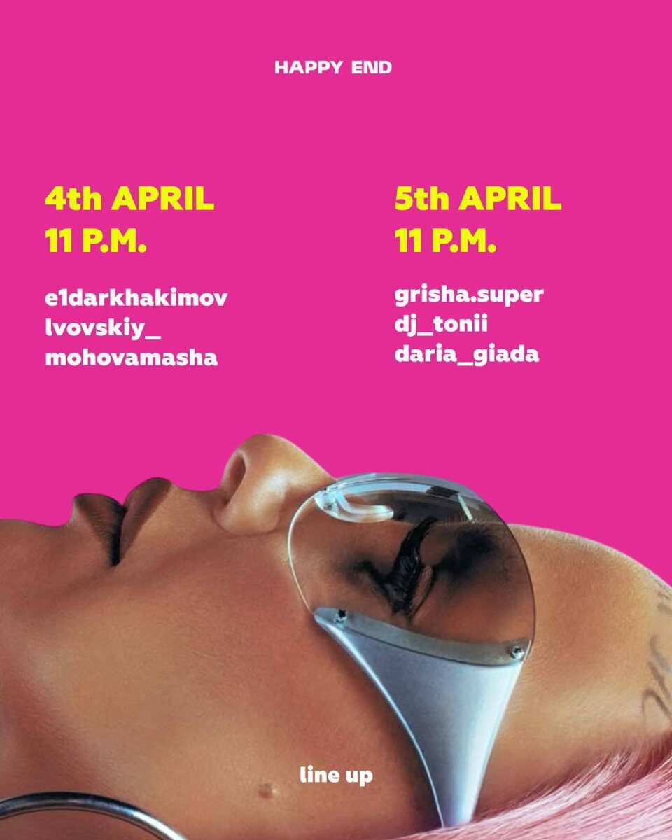 Самые горячие вечеринки в Happy End! По пятницам и субботам в баре на Патриарших прудах устраивают вечеринки с диджей-сетами, танцами, знаменитыми барби-шотами и одними из лучших коктейлей в городе. За музыку отвечают Федор Фомин, Ефим Гинзбург, Эльдар Хакимов, Гриша Супер и другие. Этот уикенд не исключение - вас ждут жаркие танцы и зажигательные треки в лучших традициях Happy End. April 4th Line up: e1darkhakimov, lvovskiy_ и dj mohovamasha (yellow room). April 5th Line up: grisha.super, dj_tonii и daria_giada (yellow room). Подробности на сайте happyendmsc.ru FC / DC 21+ 🎫 Вход свободный Бронь: +7 (985) 220-25-05, @happyendmsc_bot 🕖 Пре-пати с 20:00, вечеринки — в 23:00 📍Happy End, Москва, Спиридоньевский переулок, 9с1