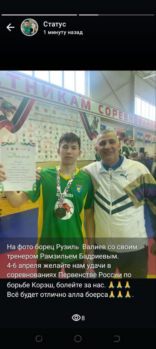 Мы уже писали, что Рузил Валиев завоевал право боротся за Татарстан по борьбе көрәш..Это большое достижение для него и района