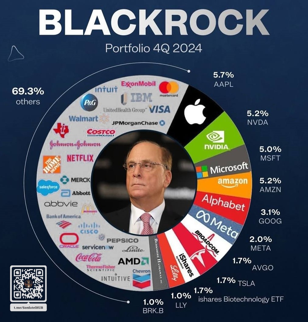 BlackRock, крупнейший в мире инвестиционный фонд с активами более 11 триллионов долларов и рыночной капитализацией свыше 160 миллиардов, занимает второе место среди акционеров четырёх из пяти крупнейших американских майнинговых компаний. Он также входит в тройку крупнейших держателей акций Microstrategy, Coinbase и PayPal. Генеральный директор BlackRock Ларри Финк оказывает значительное влияние на финансовый рынок. Он анонсировал планы по увеличению доли биткоина и эфира в своих биржевых фондах (ETF) в течение пяти лет. Финк также подчеркнул необходимость токенизации и цифровизации ценных бумаг. BlackRock планирует выделять до 5% своих портфелей на вложения в биткоин, что вдвое превышает предыдущий лимит в 1%. |HUB|