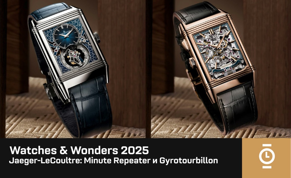 Jaeger-LeCoultre: Minute Repeater и Gyrotourbillon #WW_WD Пока что главный релиз компании на W&W 2025. Reverso Tribute Minute Repeater Изысканно-сдержанный лицевой циферблат украшен гильоше и синей эмалью. Второй циферблат скелетонизирован, чтобы показать во всей красе новый калибр 953 с ручным заводом. В механизме используются 7 существующих патентов — например, на устранение пауз между отбиванием часов, четвертей и минут. Запас хода составляет 48 часов. Крупный корпус (51,1 x 31 мм х 12,6 мм) сделан из 18-каратного розового золота. С обеих сторон отображается одно и то же время. Но, положа руку на сердце, увидеть его на скелетонизированном тыльном циферблате будет сложновато 😉 Но не беда, ведь здесь время можно и услышать. Тираж ограничен 30 экземплярами. Цена — $299 000. Reverso Hybris Artistica Gyrotourbillon Калибр 179 впервые был представлен в 2023, а сейчас часы переиздаются с обновлённым дизайном. Но они всё так же восхитительны, как и два года назад. Турбийон, кот