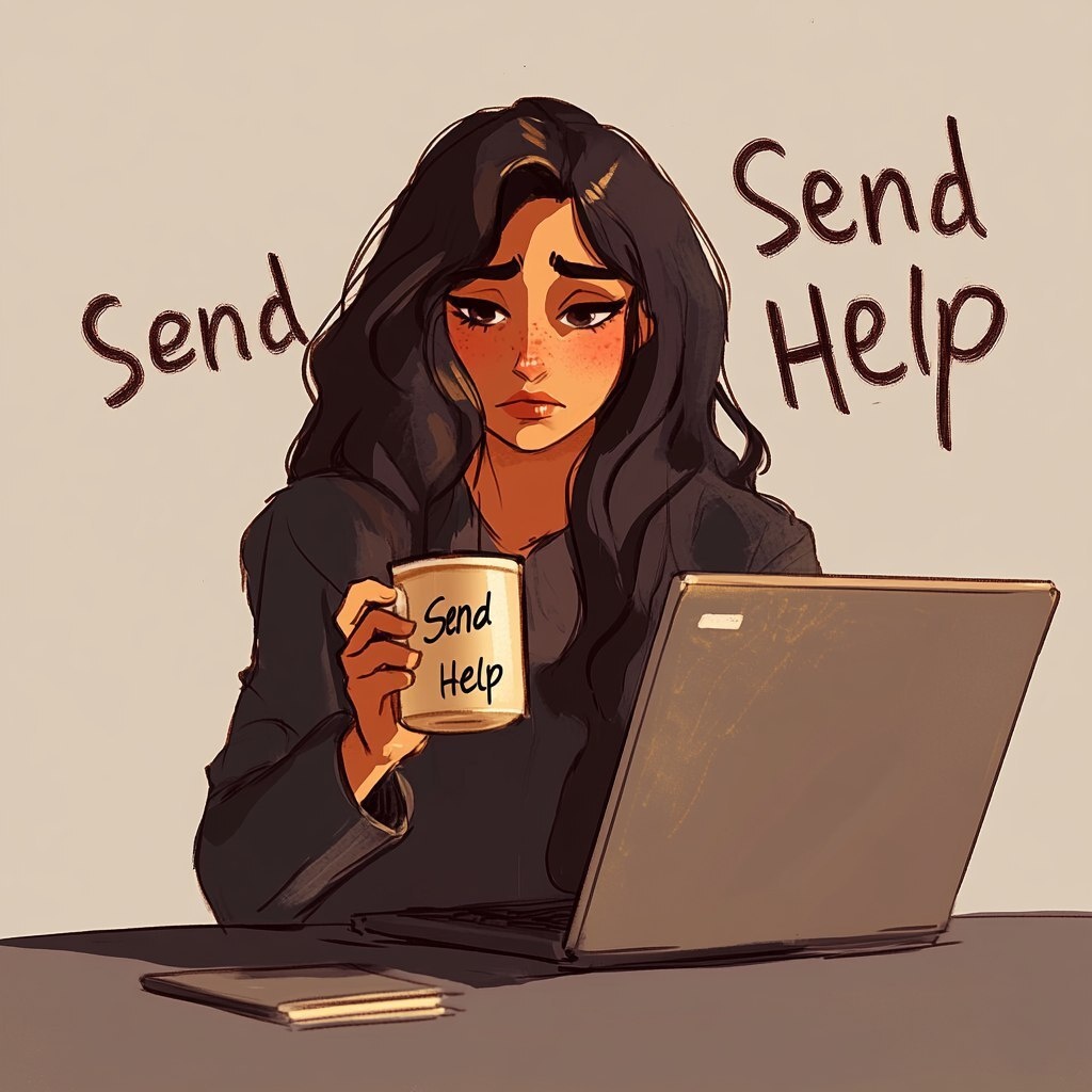 Создано на основе запроса: A fun, slightly exaggerated illustration or GIF of a sleepy pakistani female employee in office attire, holding a chai cup with "Send Help" written on it. Can we have this in ghibli effect. With a laptop in her desk. and eid mubarak written behind her --- Автоперевод: Веселая, слегка преувеличенная иллюстрация или гифка сонной пакистанской сотрудника -работника в офисной одежде, в которой написано чай с «Отправить помощь». Интересно выглядит? 🤔 https://dzen.ru/id/65c0c65c86e4f837c27b24d7 #ИИ #AI #нейросеть #midjourney #art