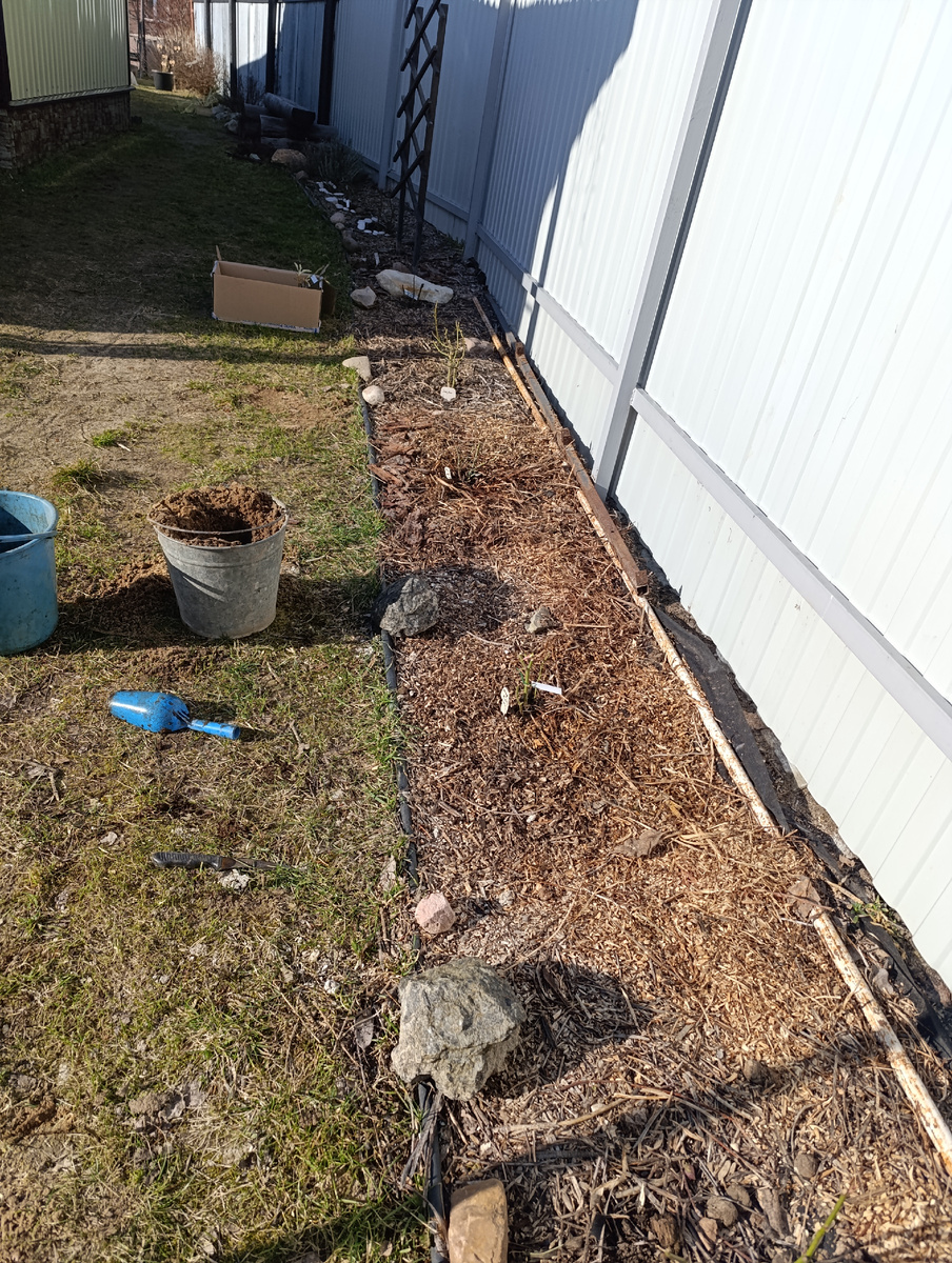 Добрый день всем! Занималась сегодня посадками. Сажала приобретенные новинки, жалко их дома держать. Земля уже достаточно оттаяла, а грядущее похолодание вреда, думаю, не доставит. Розы посадила в розовую рабатку, которую организовала в том году. Она теперь полностью засажена. Расстояния между кустов пока достаточно большие, в надежде, что всё разрастётся. Розы были с хорошими, здоровыми корешками. Даже во время пути появились белые всасывающие молоденькие корешочки. Надеюсь, что всё приживется. Сбежавшая невеста- это ампельная гортензия. Она будет расти у меня в бочке, которую я осенью отреставрировала. Для этого в Светофоре купила строительное ведро по размеру. Бортики ведра удачно зацеплялись за края бочки, но носик мешал. Лобзик мне в помощь. А в дне просверлила дренажные отверстия. Пока гортензия будет жить в холодной пристройке, до устойчивого тепла. Ручку у ведра оставила, чтоб удобно было переносить. Уже представляю, как красиво будут спадать белоснежные цветы. Кустик довольн