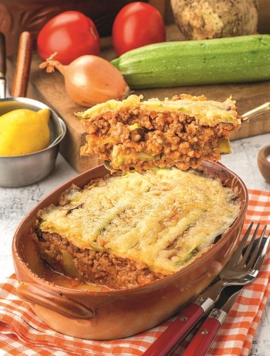 Лазанья из кабачков — лёгкая и полезная альтернатива традиционной лазанье, где вместо слоёв пасты используются тонко нарезанные ломтики кабачков. В лазанье из кабачков есть витамин А, витамин С, витамин РР, калий, фосфор, хлор, кобальт, хром. Это низкоуглеводное блюдо, которое подойдет тем, кто ищет способы добавить больше овощей в рацион. Содержит достаточное количество белка благодаря мясу и сыру. Подходит для тех, кто следит за фигурой, ведь кабачки на 83% состоят из воды. Тем, кто ещё не готовил, берите рецепт на заметку-самое время для его приготовления. 📝 Ингредиенты: 2 кабачка, 300 г говяжьего фарша, 1/2 луковицы, 40 г моркови, 30 г корневого сельдерея, 1/4 ст. красного сухого вина, 2/3 банки резаных помидоров в собственном соку, 1/2 ч. ложки сухой смеси итальянских трав, 20 г пармезана, 30 г моцареллы для пиццы, растительное масло для жарки. Очищенные лук, морковь и сельдерей нарезать маленькими кубиками. Фарш обжарить, в глубокой сковороде, выложить в миску. Сковороду