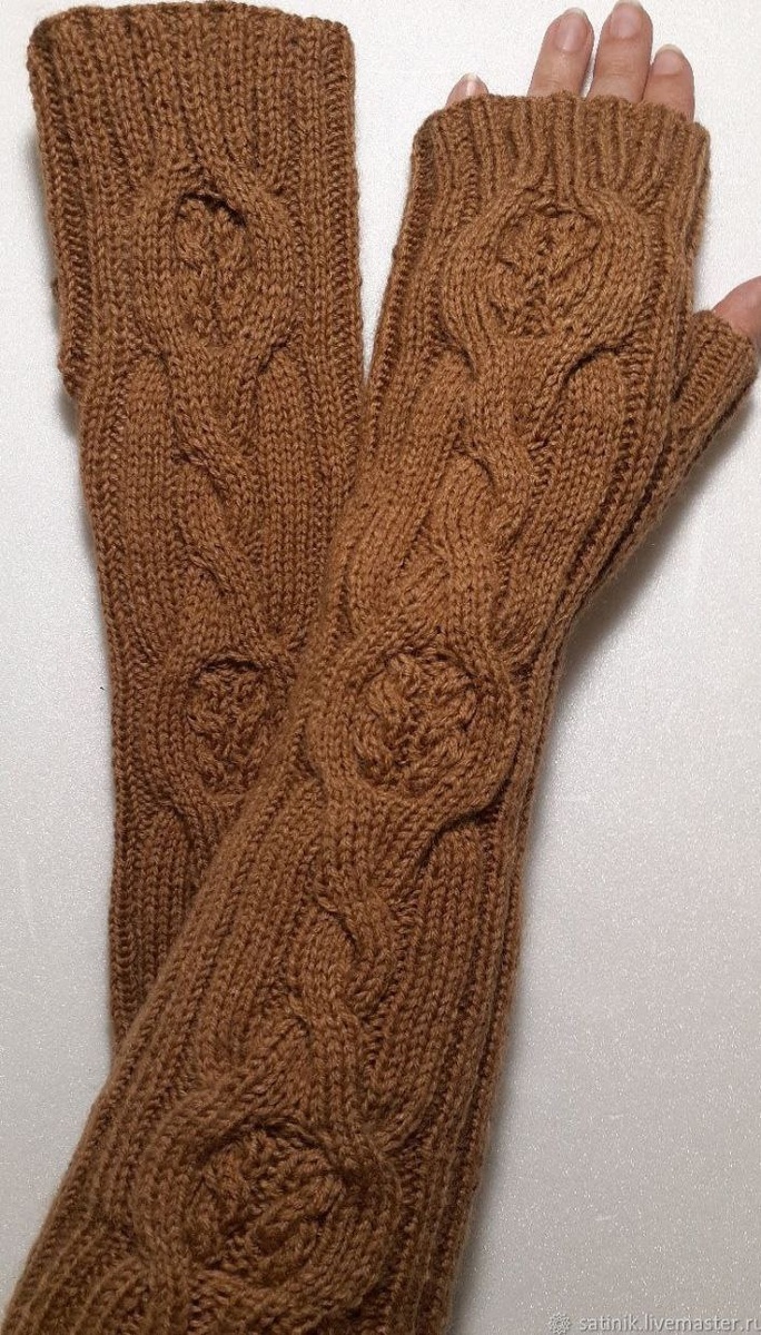 Утренний туман цвет карамель. Длина до локтя, большой палец вывязан. Из полушерсти. Плотные, не спадают с рук. Цвет можно менять по запросу