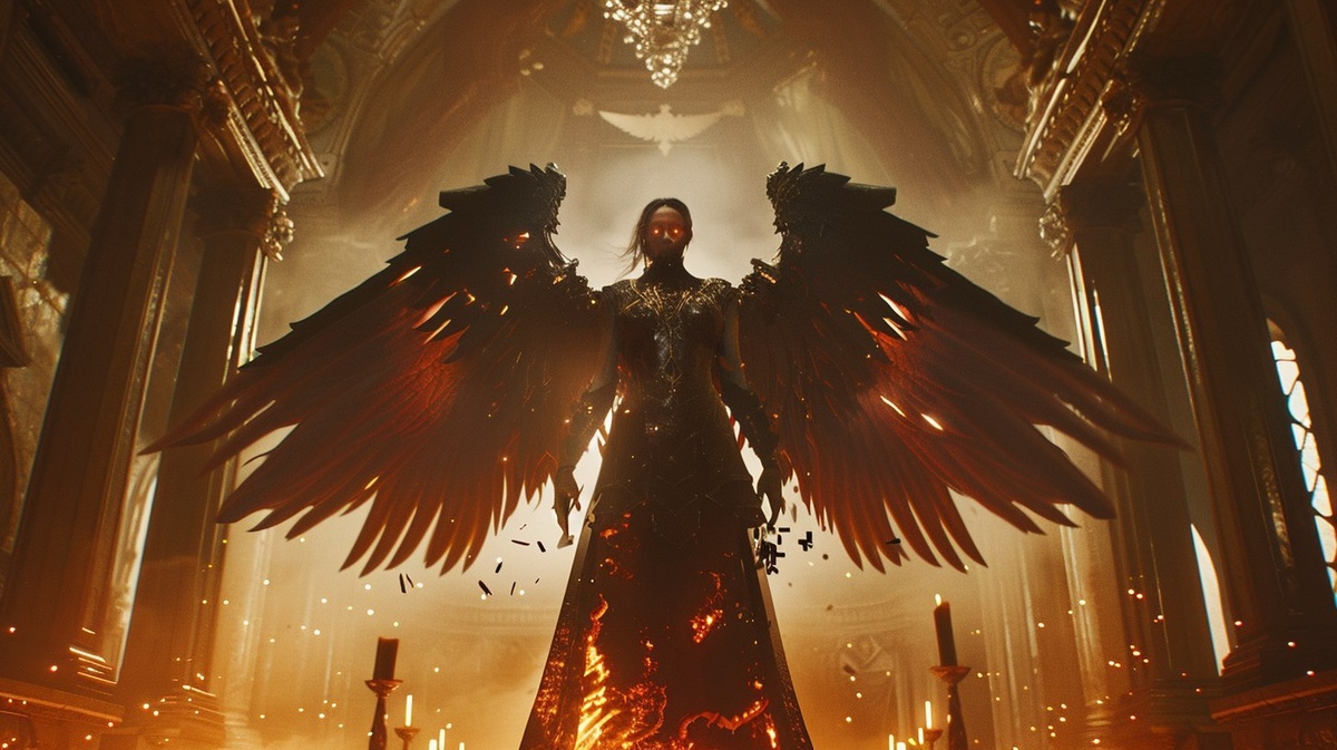 Создано на основе запроса: a terrifying female demonic entity with Balrog-like features, non-human form, body made of fire and shadows, molten black and gold armor, glowing cracks on skin, flaming horns, burning wings of darkness, red glowing eyes, gothic throne hall, majestic and horrifying, ultra detailed, cinematic dark fantasy, 8k --- Автоперевод: Ужасная женская демоническая сущность с балрог-подобными чертами, нечеловеческой формой, телом из огня и тени, расплавленной черной и золотой броней, светящимися трещинами на коже, пылающими рогами, горящими крыльями тьмы, красными светящимися глазами, готическим троном, величественным и ужасающим, ультра-детальным, кинематографическим темным фантазией, 8K, 8K. Как тебе эта иллюстрация? 🤔 https://dzen.ru/id/65c0c65c86e4f837c27b24d7 #ИИ #AI #нейросеть #midjourney #art
