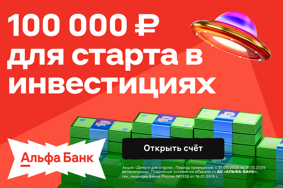 с акциями российских компаний. Если цена акций вырастет, сможете забрать прибыль реальными деньгами. А если снизится, вы ничего не потеряете Открыть брокерский счёт нужно до 30 апреля 2025 года включительно,