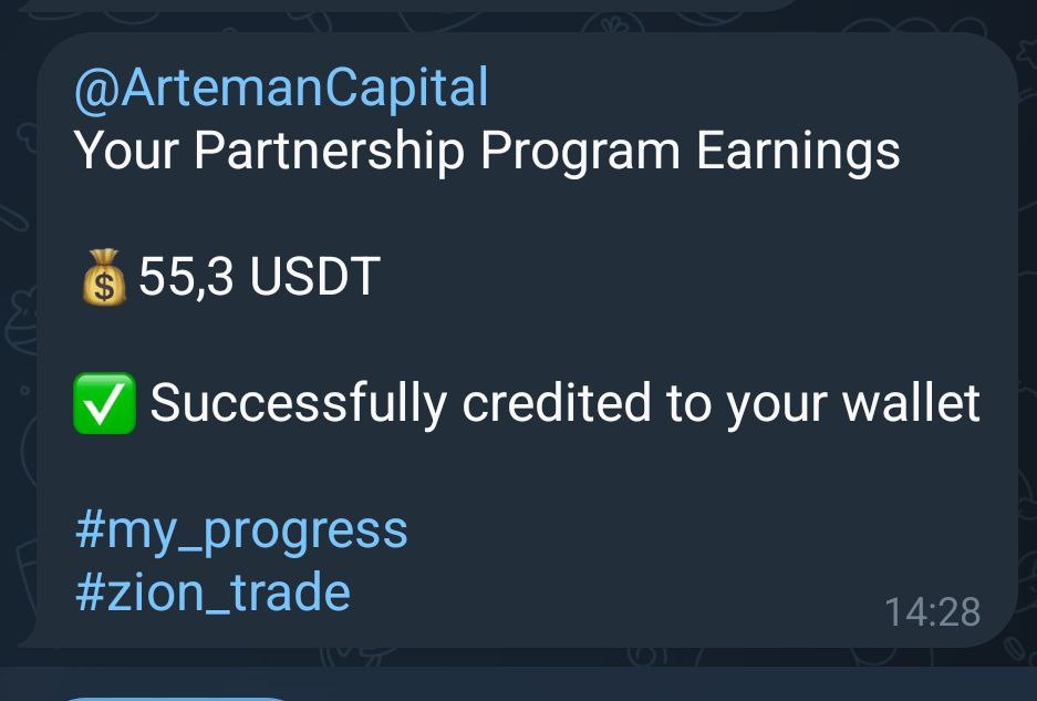Пришла выплата с Зиона за партнёрство