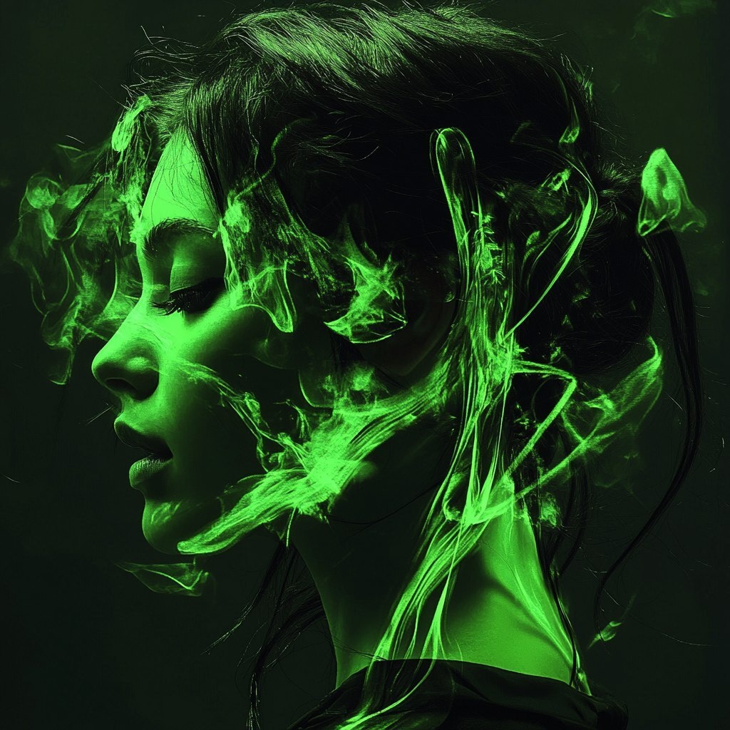 Создано на основе запроса: brand imagery that evokes goth, grunge, industrial vibes, neon green and black colors. fire, neon lights