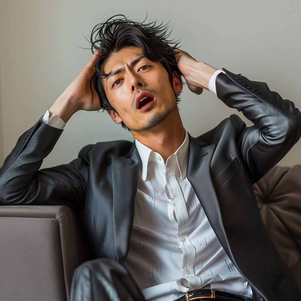 Создано на основе запроса: very Handsome Japanese man with a bad attitude, bad manners, 27 years old,lean over the shoulder, bad moody, opening legs, talking, very anger,belt, lean against head, real photo, full body image, sitting on the sofa, gray shiny suit,yawn, golden ratio, short black hair, no makeup, small head, narrow eyes, small long nose, arms loose, thin lips , small teeth* --- Автоперевод: Очень красивый японский мужчина с плохим отношением, плохими манерами, 27 лет, наклоняется через плечо, плохие капризные, открытые ноги, разговор, очень гнев, ремень, наклоняющийся к головой, настоящий фото, изображение всего тела, сидя на диване, серый блестящий костюм, золотые, золотые зубы, короткие черные волосы, без маки Необычно выглядит? 🤔 https://dzen.ru/id/65c0c65c86e4f837c27b24d7 #ИИ #AI #нейросеть #midjourney #art