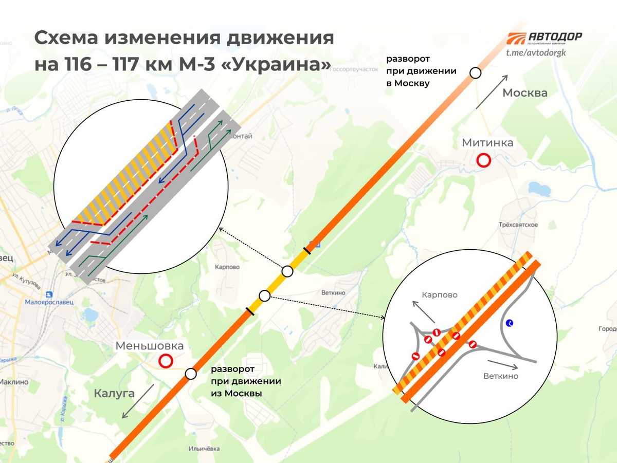 ΡΠ΅ΠΊΠΎΠ½ΡΡΡΡΠΊΡΠΈΠΈ ΡΠ΅Π΄Π΅ΡΠ°Π»ΡΠ½ΠΎΠΉ Π΄ΠΎΡΠΎΠ³ΠΈ, ΡΠΎΠΎΠ±ΡΠΈΠ»ΠΈ Π² Β«ΠΠ²ΡΠΎΠ΄ΠΎΡΠ΅Β». ΠΡΠ΅Π·Π΄ ΡΠΎ ΡΡΠΎΡΠΎΠ½Ρ Π΄Π΅ΡΠ΅Π²Π½ΠΈ ΠΠ΅ΡΠΊΠΈΠ½ΠΎ Π½Π° ΡΡΠ°ΡΡΡ Π3 Β«Π£ΠΊΡΠ°ΠΈΠ½Π°Β» ΠΎΡΡΡΠ΅ΡΡΠ²Π»ΡΠ΅ΡΡΡ ΡΠΎΠ»ΡΠΊΠΎ Ρ ΠΏΡΠ°Π²ΡΠΌ ΠΏΠΎΠ²ΠΎΡΠΎΡΠΎΠΌ. ΠΠΎΡΡΡΠΏ ΠΊ ΠΠΠ‘ ΠΈ Π΄Π΅ΡΠ΅Π²Π½Π΅ ΠΠ°ΡΠΏΠΎΠ²ΠΎ Π·Π°ΠΊΡΡΡ. Π‘Π²Π΅ΡΠΎΡΠΎΡ Π΄Π΅ΠΌΠΎΠ½ΡΠΈΡΡΡΡ. ΠΠ»Ρ ΡΠ°Π·Π²ΠΎΡΠΎΡΠ° Π²ΠΎΠ΄ΠΈΡΠ΅Π»ΡΠΌ Π½ΡΠΆΠ½ΠΎ ΠΈΡΠΏΠΎΠ»ΡΠ·ΠΎΠ²Π°ΡΡ ΠΏΠ΅ΡΠ΅ΠΊΡΠ΅ΡΡΠΊΠΈ Π½Π° 112 ΠΊΠΈΠ»ΠΎΠΌΠ΅ΡΡΠ΅ (ΠΠΈΡΠΈΠ½ΠΊΠ°) ΠΈΠ»ΠΈ 119 ΠΊΠΈΠ»ΠΎΠΌΠ΅ΡΡΠ΅ (ΠΠ»ΡΠΈΡΠ΅Π²ΠΊΠ° - ΠΠ΅Π½ΡΡΠΎΠ²ΠΊΠ°). ΠΠ°Π»ΡΠ³Π°.ΠΠ»Π°Π²Π½ΠΎΠ΅