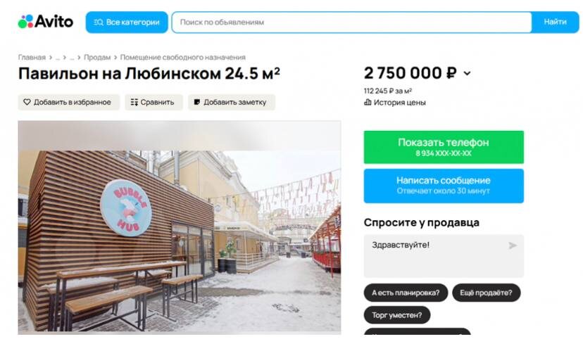 Киоск с высоким потенциалом летнего дохода надеются реализовать за 2,7 млн рублей. На сайте «Авито» выставлен на продажу павильон площадью 24,5 кв. м, находящийся по адресу: улица Ленина, 7. Объект подключен ко всем основным коммуникациям и оборудован необходимой техникой. Павильон предлагается как действующий бизнес по продаже напитков бабл-ти, хотя его можно адаптировать и под другие виды деятельности, такие как общественное питание или иные сферы. Продавец подчеркивает, что в летний период наблюдается значительный приток посетителей, что позволяет ежедневно зарабатывать столько же, сколько конкуренты получают за целый месяц в других районах города. Стоимость готового бизнеса установлена на уровне 2,7 миллиона рублей. Омскинформ