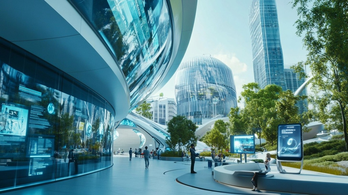 Создано на основе запроса: 4K ultra-photorealistic image of a futuristic startup campus in Songdo, South Korea. Sleek glass and steel architecture with curved facades, digital signage on building surfaces. Young global entrepreneurs interacting with floating AR dashboards, AI-powered assistant robots nearby, some using holographic laptops in an open plaza. Lush urban landscaping, blue sky, subtle tech glow. --- Автоперевод: 4K Ультра-фотореалистический образ футуристического кампуса стартапа в Сонддо, Южная Корея. Хорошо получилось? 🤔 https://dzen.ru/id/65c0c65c86e4f837c27b24d7 #ИИ #AI #нейросеть #midjourney #art