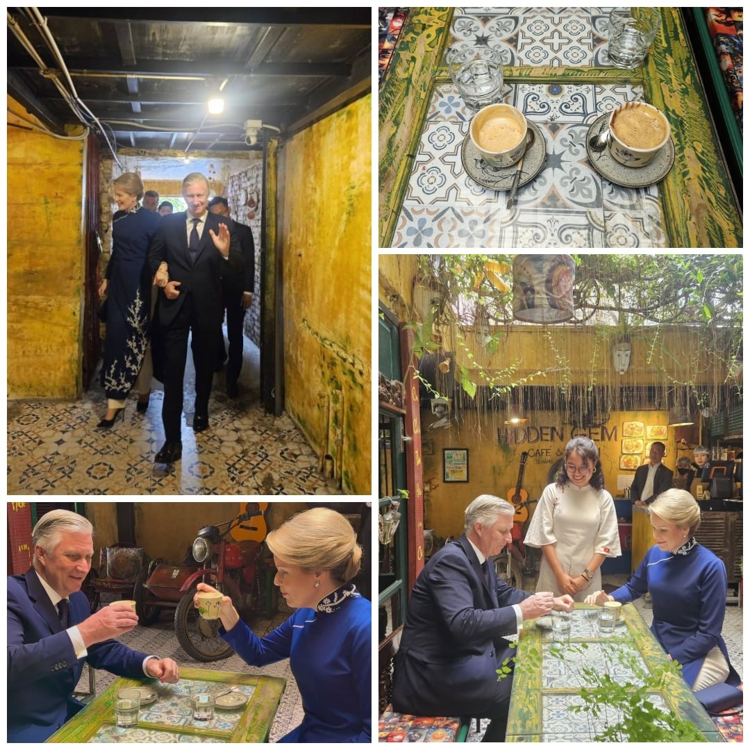 Король и королева Бельгии пробуют кофе с яйцом