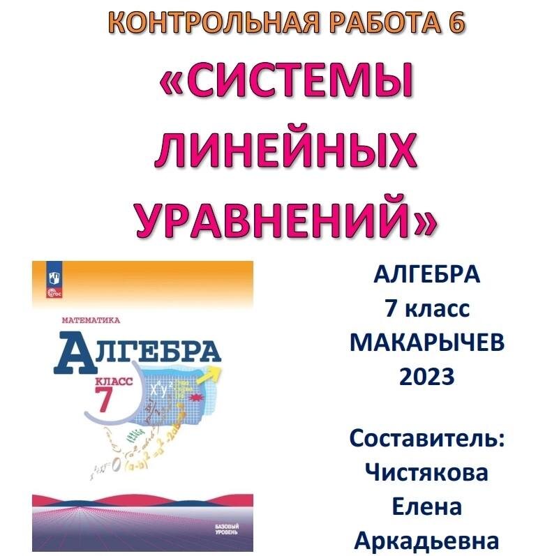 🆗 Контрольная работа 6 “Системы линейных уравнений” по учебнику Макарычева Просвещение 2023, 2024