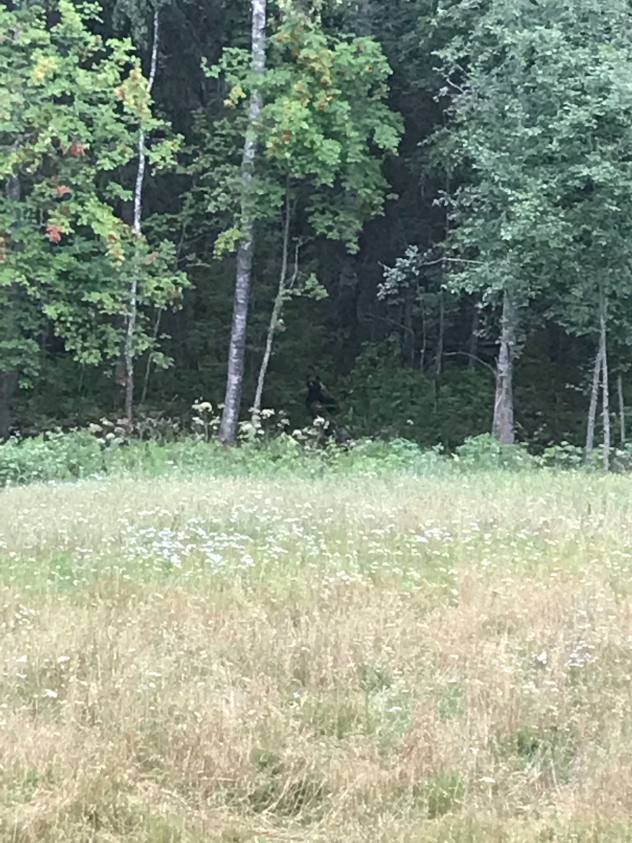 Через несколько сезонов, подходя к этому же полю, увидел темного крупного медведя, переходящего дорогу, по которой я иду. Но и расстояние было немаленькое, и время нахождения мишки на дороге было совсем недолгое, в общем, мишка благополучно скрылся. Хотя и меня он не видел. Переходил он дорогу прямо у овсяного поля, но в тот вечер на поле он так и не вышел.