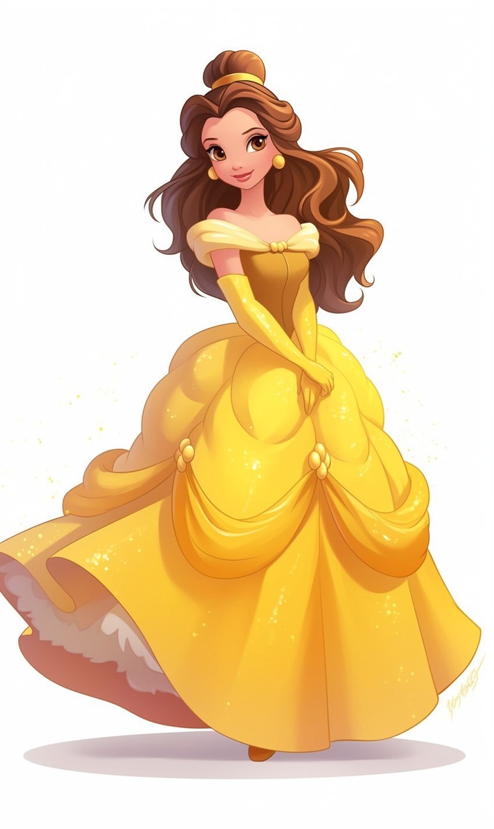 Создано на основе запроса: Draw a Belle Princess, front, large skirt, colorful skirt, white background, strong texture, cartoon, hand-drawn
