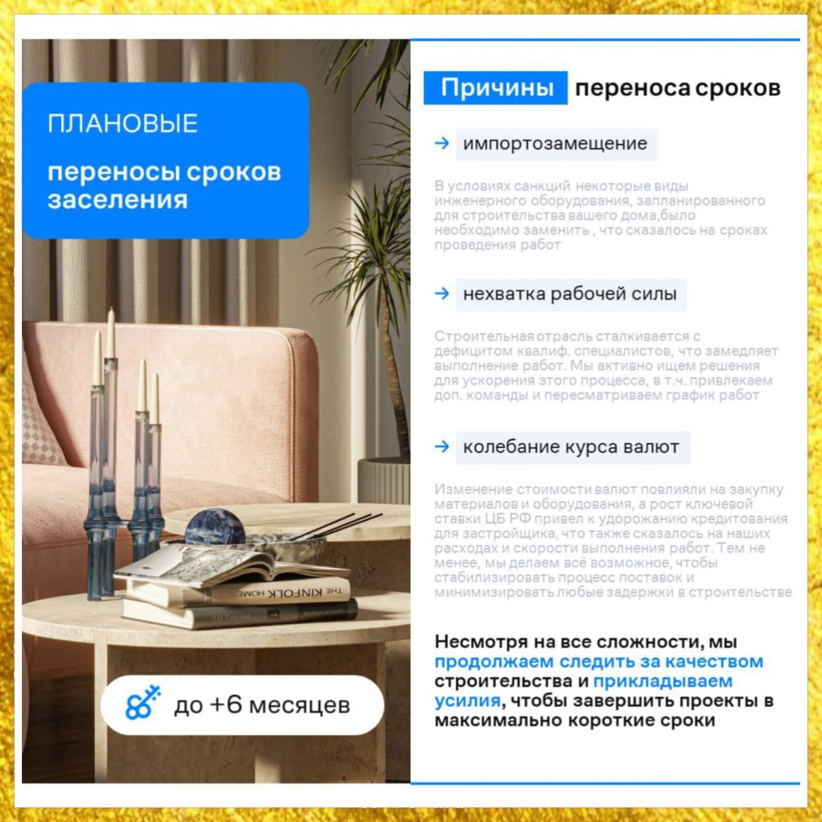 🛩️ «Самолёт» переносит сроки заселения и официально попросил агентов проработать негатив с покупателями по разработанным мотодичкам. 🗓️ В частности дан ответ на вопрос «Почему сроки перенесли?» (см.золотую рамочку). 🙄 Этот ответ сложно комментировать! А покупатели, которых коснулся перенос, я уверен, прокомментируют ответ застройщика скорее в нецензурных выражениях.
