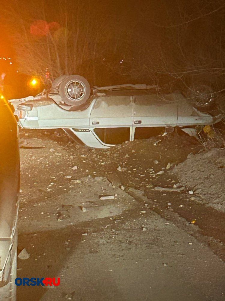В Орске по пути в посёлок в Первомайский перевернулась Волга. В результате аварии авто перевернулось вверх дном.