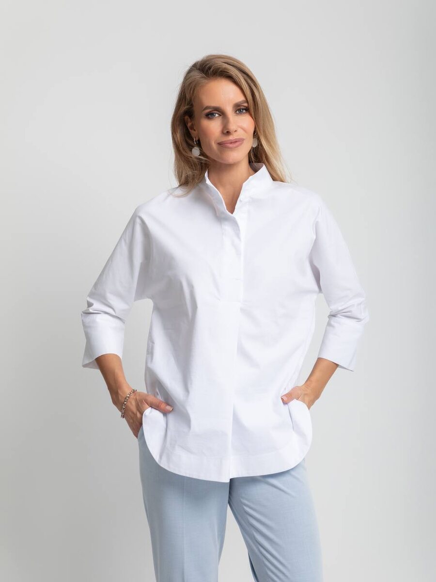 Элегантность в простоте: Ваш новый деловой образ В динамичном ритме современной жизни, когда каждая минута на счету, особенно важно чувствовать себя уверенно и комфортно. BUSINESS LINE представляет идеальное сочетание для Вашего делового гардероба: белая хлопковая рубашка дополненная нежно-голубыми брюками. Пока рассмотрим поближе рубашку: она словно чистый холст, подчеркивающий Вашу безупречность. Скрытый пуговичный ряд создает лаконичный силуэт, а воротник-стойка добавляет образу нотку аристократизма. Для заказа пишите на наш WhatsApp: https://wa.me/message/GESSL37P7LULC1 Рубашка 6.22.25 Брюки 2.22.13-7