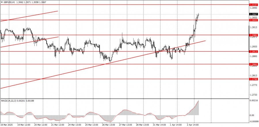 https://basechop.ru/wordpress/?p=36815 Разбор сделок среды: 1Н график пары GBP/USD. Пара GBP/USD в среду взлетела вверх на 160 пунктов и продолжает стремительный рост. Еще раз повторимся: мы не ожидали, что Дональд Трамп введет тарифы против всех стран мира, а для избранного списка тарифы будут колебаться от 20% до 100%. Скажем так, мало, кто ожидал увидеть настолько жесткие меры. Предугадать действия Дональда Трампа не может никто в мире. Соответственно, никто не может спрогнозировать, как поведет себя рынок на том или ином решении Трампа, которое невозможно предугадать. Теперь трейдерам следует ожидать длительных переговоров между США и странами, обложенными тарифами «по уши». Сильные государства будут отвечать, слабые – стараться договориться. Архитектура мировой торговли начнет меняться, начнут заключаться торговые альянсы, вводиться контрмеры и контрмеры против контрмер. Макроэкономический и фундаментальный фон не имеют сейчас никакого значения. 5M график пары GBP/USD. На…