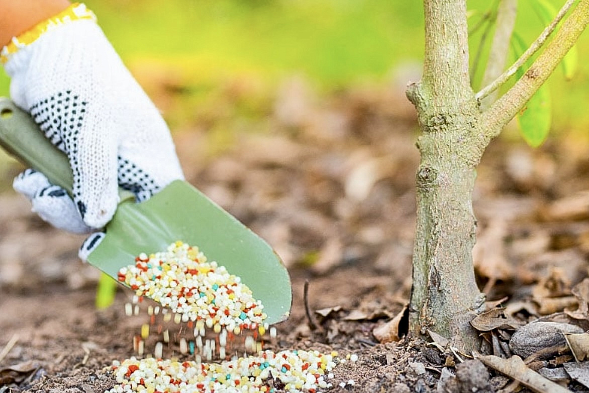 точный — сделать 1–3 лунки глубиной 10–15 см в зоне корней и засыпать удобрение туда, а затем прикрыть землёй. Так