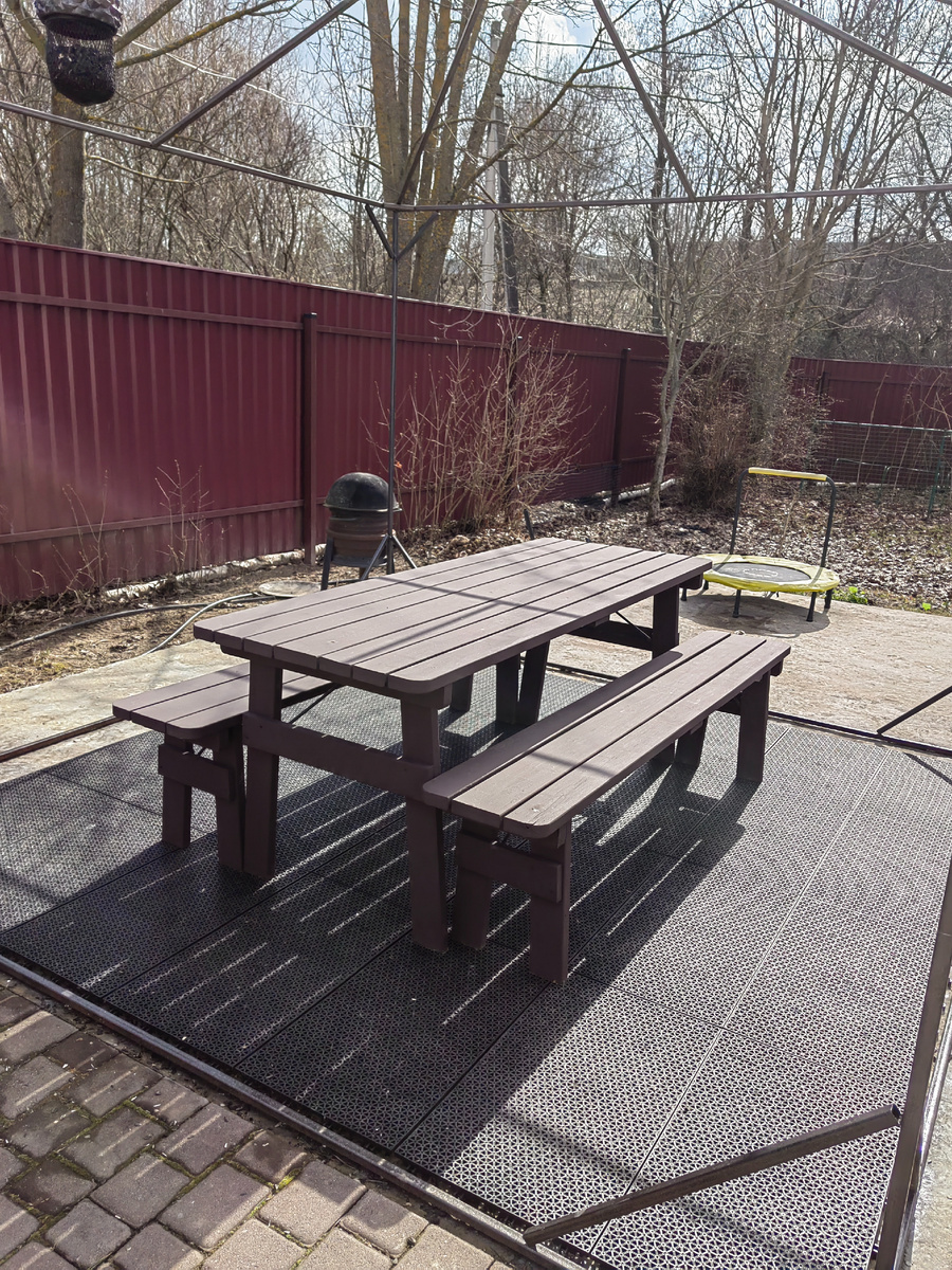 Стол и лавочки в беседке много лет уже окрашиваю резиновой краской цвета "Арабика".
